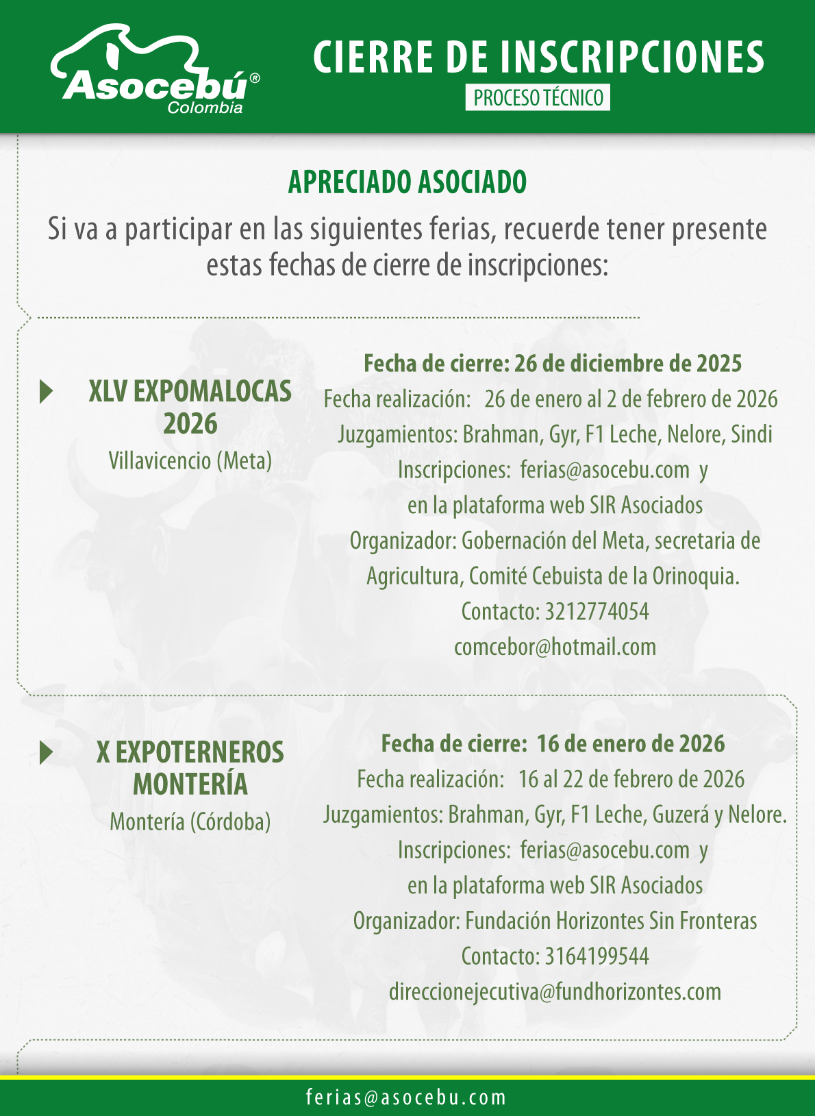 Para conocer resultados de ferias anteriores al 2026 por favor, ingrese aqui